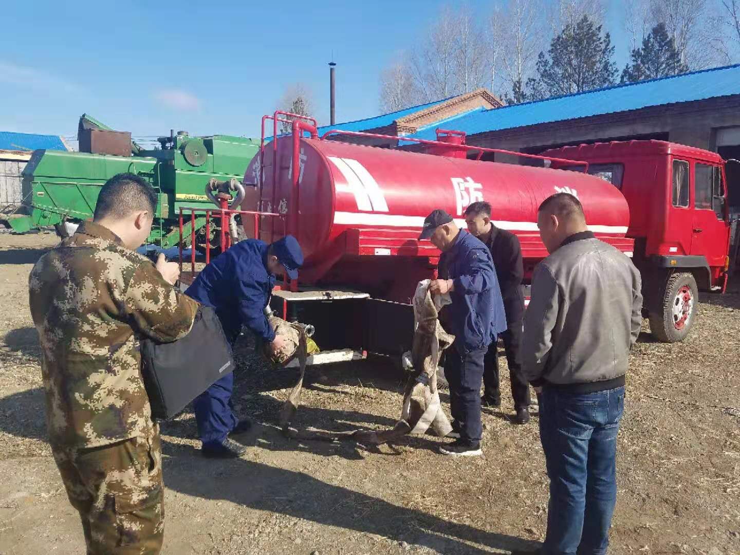 3月11日,扎兰河农场邀请大杨树镇消防中队林佰涛指导员一行到农场就消防联防工作进行对接、指导。并现场演练指导农场防火消防队人员如何正确整理使用消防水袋、水枪等设备,确保在险情发生时,能第一时间自防自救。